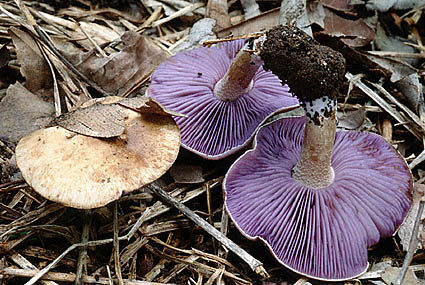 One of the first species found during our 2000 visit to Ouagadougou was a 4-6 cm broad agaric with beautifully lavender gills. It was creame-spored and reminded somewhat of a Lepista, but lacking the typical sweet scent of this genus. The microscope revealed hyalin, ellipsoid spores with large warts - a spore design very rare in European agaricales. A search in Singers The Agaricales lead to the genus Asproinocybe with 4 species.