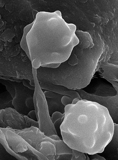 Asproinocybe russuloides, closeup of spore in SEM (© Anni Sloth)