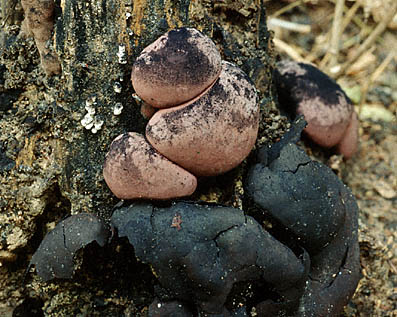 This species of Daldinia seems to be the most common tropical species found both in the old and new worlds. It contains a bright purple pigment. It typically produce stromata in exposed positions, fx on made made constructions, in clearings etc.