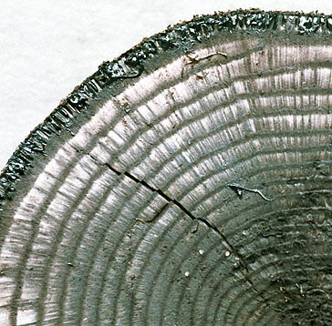 Although genus may not be a good one (very close to Hypoxylon), it can easily be recognized as a true or false natural entity by its distinctly zoned, inner stroma. The stromata tend to be large and semiglobose to turbinate and many species have purple, extractable pigments. They tend to appear early in the decay process. In the Ouagadougou lab., a species (probably D. eschscholzii) had attacked the timber in the wall and was producing an anamorph and young, immature stromata on the wall!